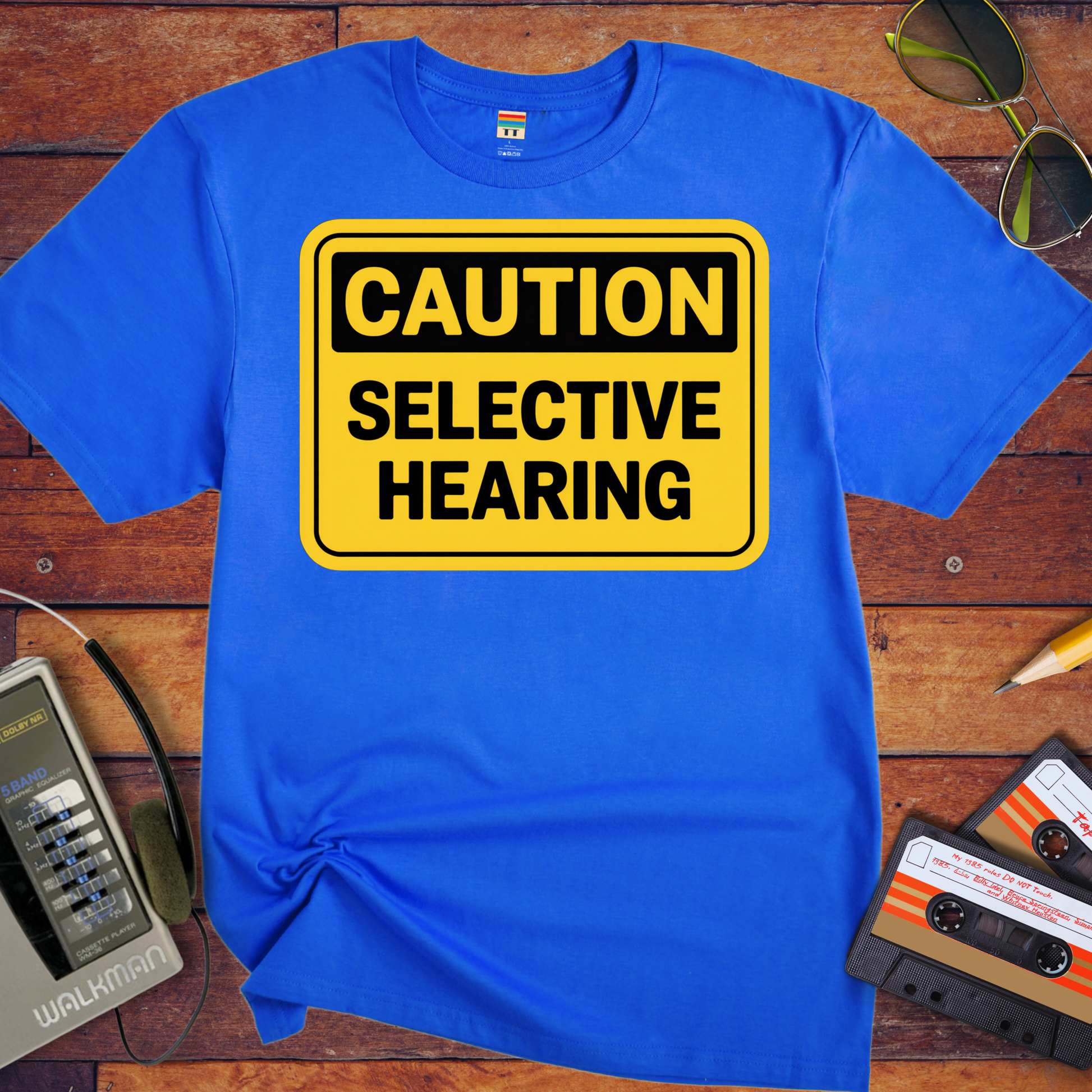The perfect warning for those who only hear what they want to hear! Our 'Caution Selective Hearing' T-shirt is ideal for anyone who's mastered the art of tuning out unwanted information. A hilarious celebration of selective listening with classic British humour.
