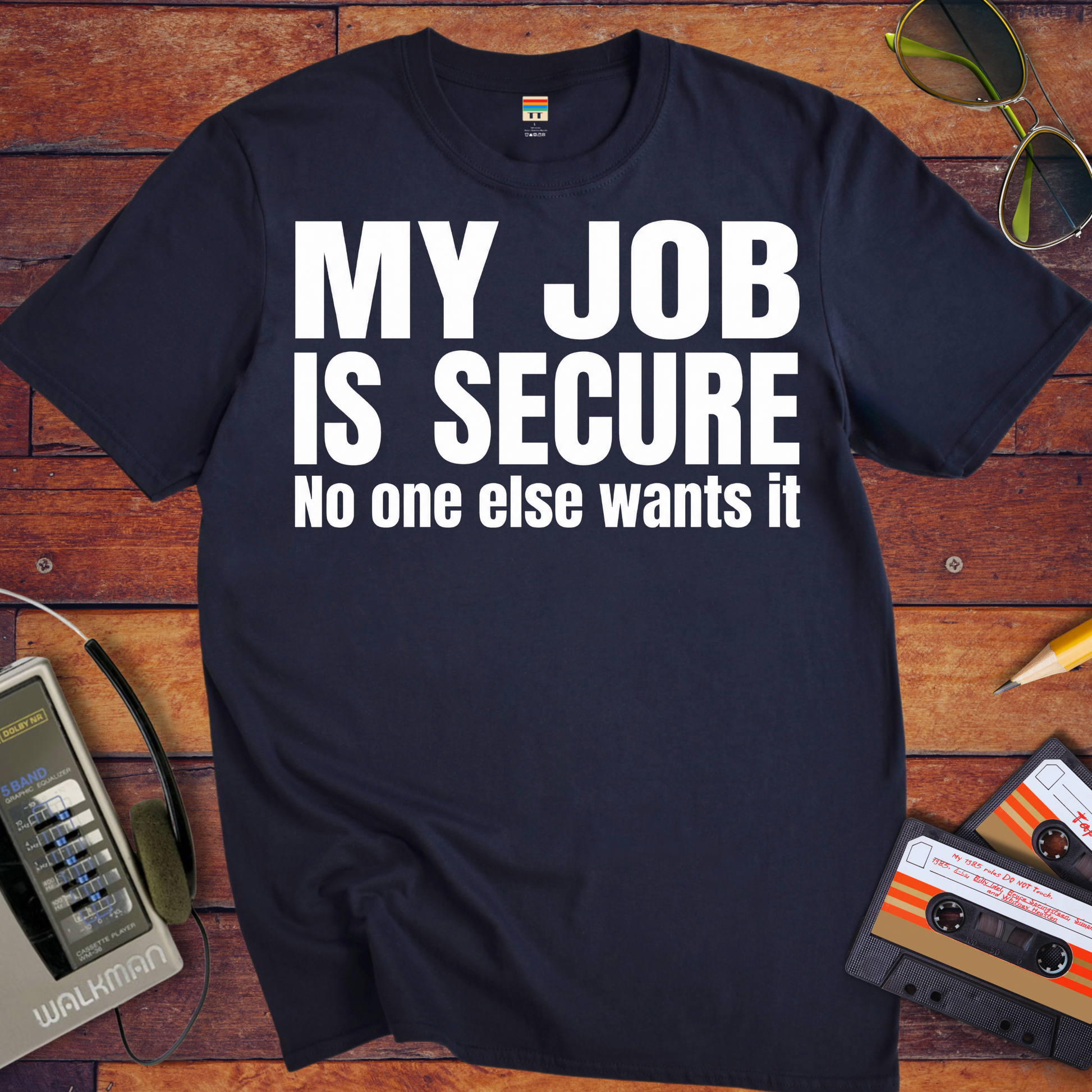 'MY JOB IS SECURE' Funny T-Shirt