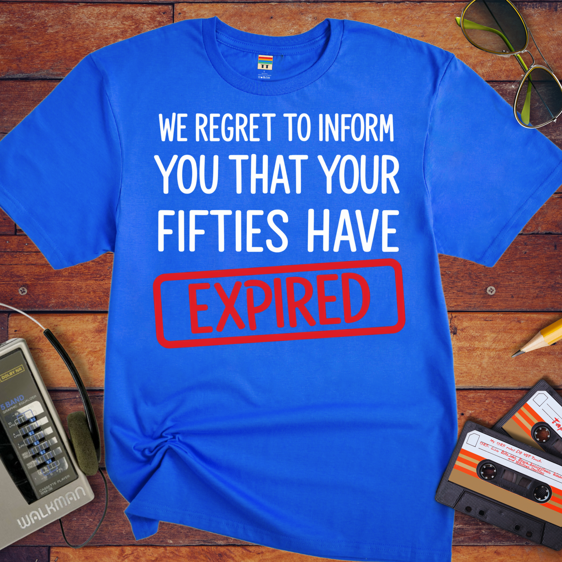 'WE REGRET TO INFORM YOU THAT YOUR FIFTIES HAVE EXPIRED' T-Shirt